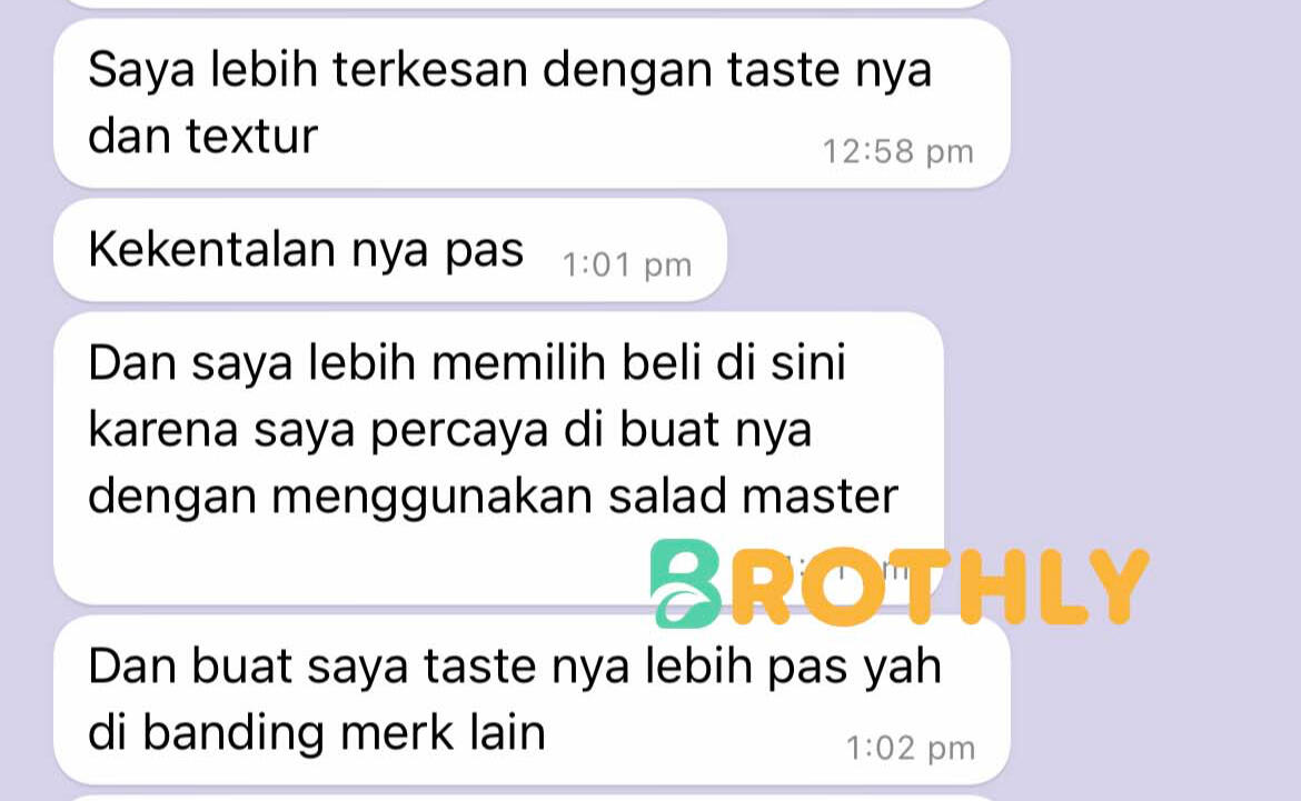 Rasa kaldu Brothly bukan seperti kaldu biasa - sudah terbukti enaknya! Dengan bahan-bahan berkualitas dan proses masak yang panjang tapi tentunya terjaga, Brothly Bone Broth adalah pilihan utama konsumen kami untuk makanan yang sehat dan enak.